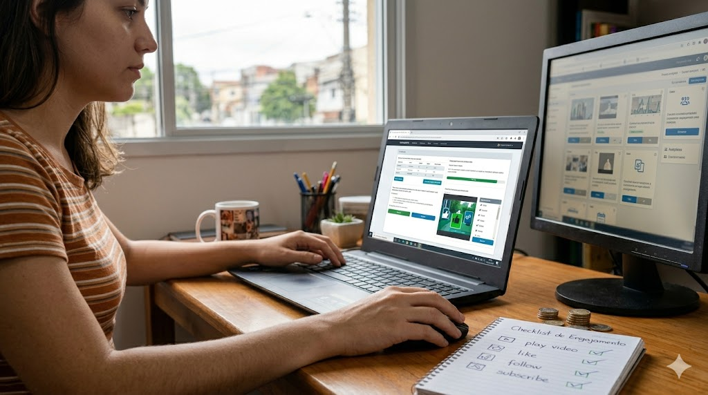 Após o cadastro gratuito, você acessa um painel com as tarefas disponíveis filtradas por categoria, valor e requisitos. Cada tarefa vem com instruções específicas que podem incluir: