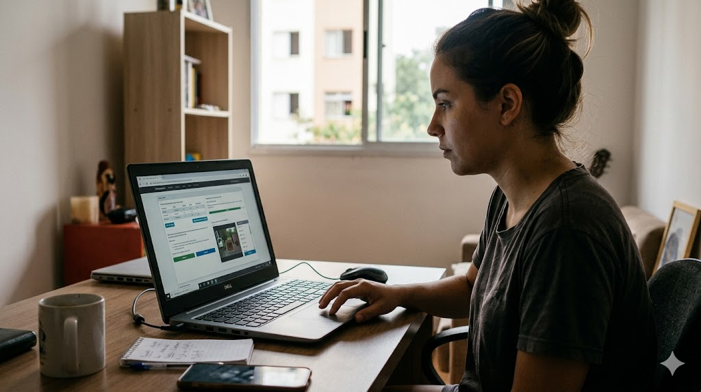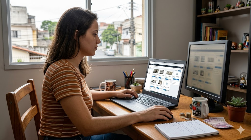 Embora o celular funcione, o computador ou notebook torna o trabalho mais rápido, especialmente em tarefas que envolvem digitação, navegação em vários sites ou preenchimento de formulários longos.